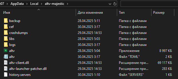 2) открыл altv.toml через блокнот, дописываю эту строчку -> пробую заходить - не помогает, пробую с ребутом системы - NO, потом вижу что в этом файлике моя строчка удаляется (я вроде не идиот, сохраняю её), но после кождого изменения файла, и каждой попытки подключиться к серваку через лаунчер маджестик эта строчка удаляется.