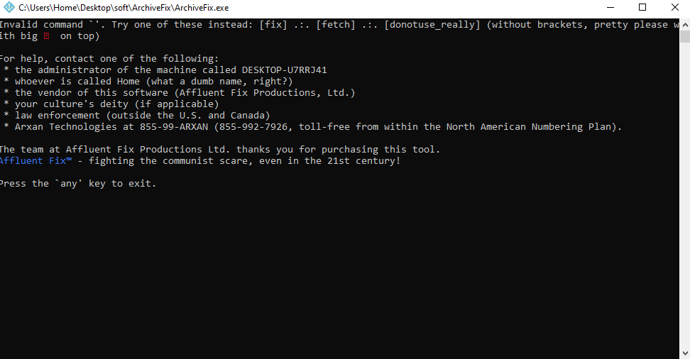 Invalid command `'. Try one of these instead: [fix] .:. [fetch] .:. [donotuse_really] (without brackets, pretty please with big 🍒 on top)